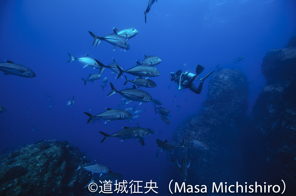 潮が止まると何もいない・・・・・・ 小笠原諸島母島はサワラ根と呼ばれている根です。その昔石原慎太郎もここでダイビングをし、ここを好んだことから慎太郎ポイントなんていう名前もついています。。しかし潮流の関係で一般の人はここでダイビングをすることはできません。 この写真ではあまり数は多くありませんが、普段は大物がたくさん出る場所として知られており、釣り人からも好まれている根です。 公式Facebookページ 小笠原諸島の過去の写真