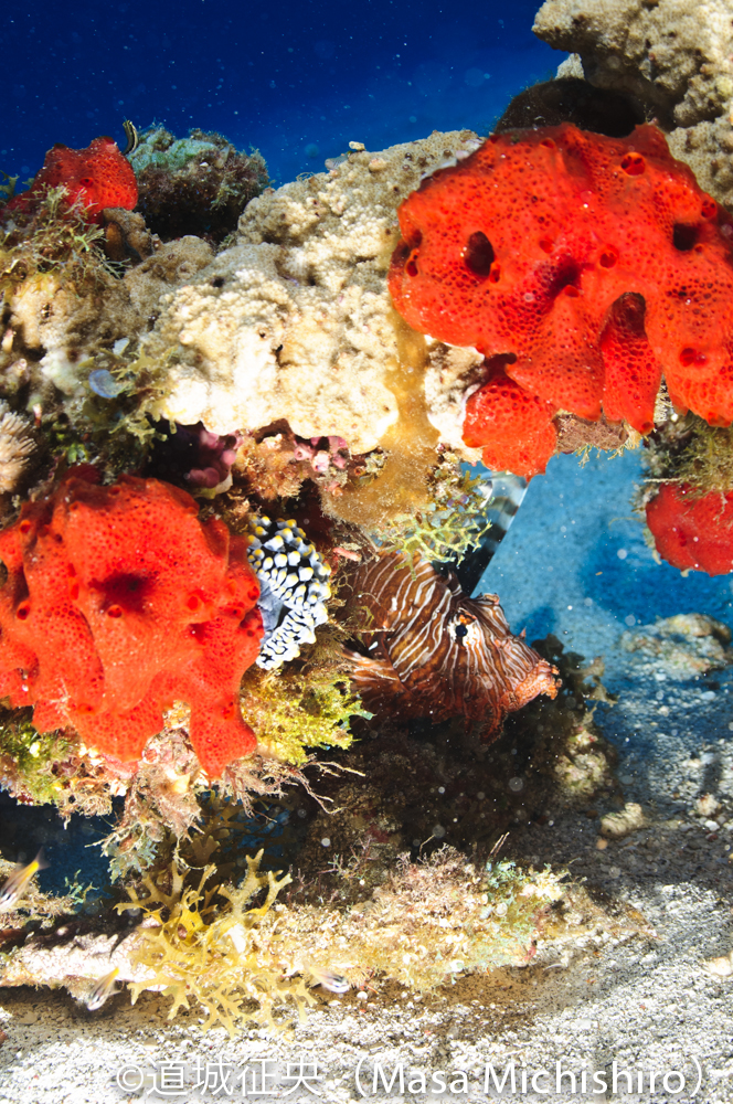 小笠原諸島母島での一コマ。写っている生き物自体は特別な物は何一つありませんがけっこう彩りのある世界になったのでは?そう思っております。