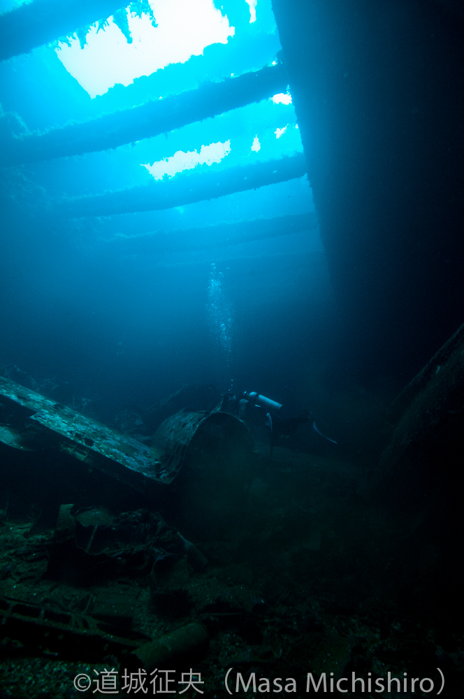 よく現地ではゼロ戦と呼んでいるのですが、実はこの船の船倉にはゼロ戦ではなく九十七式艦上攻撃機という飛行機が搭載されています。残骸になってしまいましたが、2〜3機はあると思います。