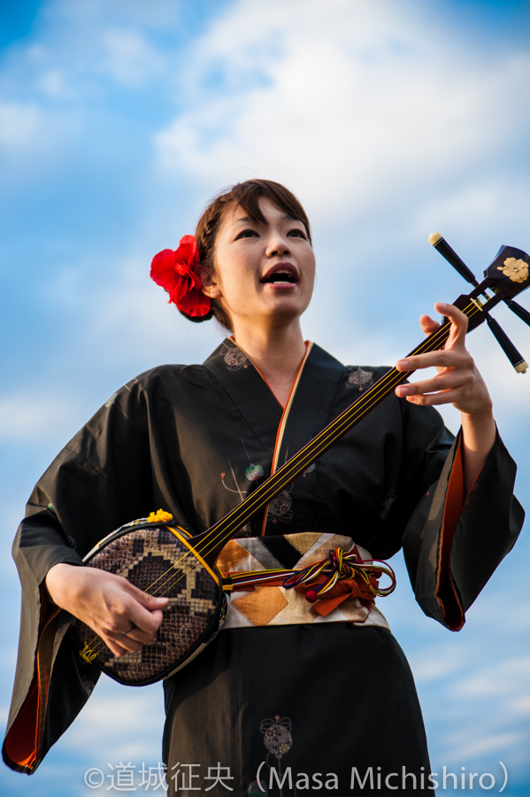 喜界島の島唄の名手、川畑さおりさんです。奄美の島唄と琉球の島唄は少し違いがあります。