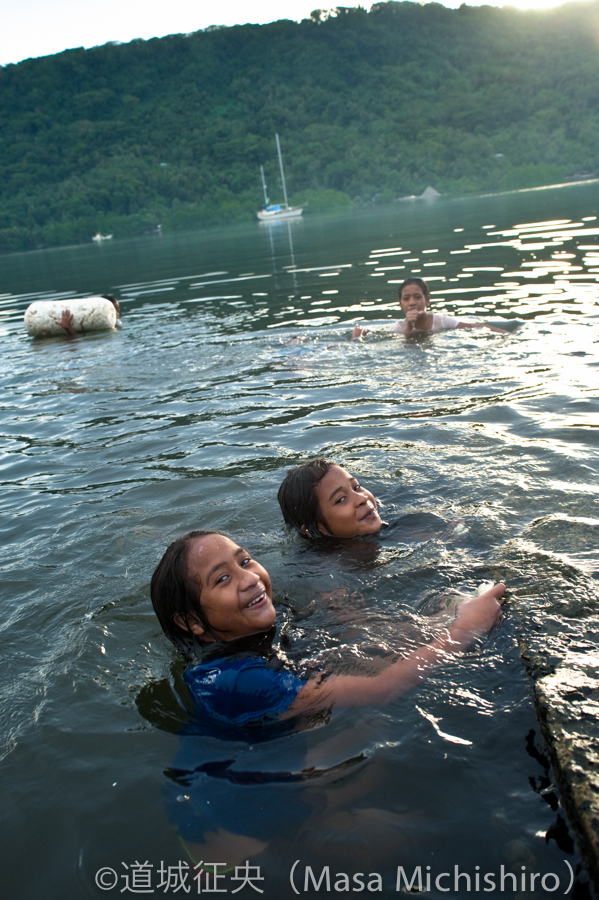 あまり綺麗とは言えませんが、こんな海にでも、女の子でも普通に飛び込んで泳いでいます。