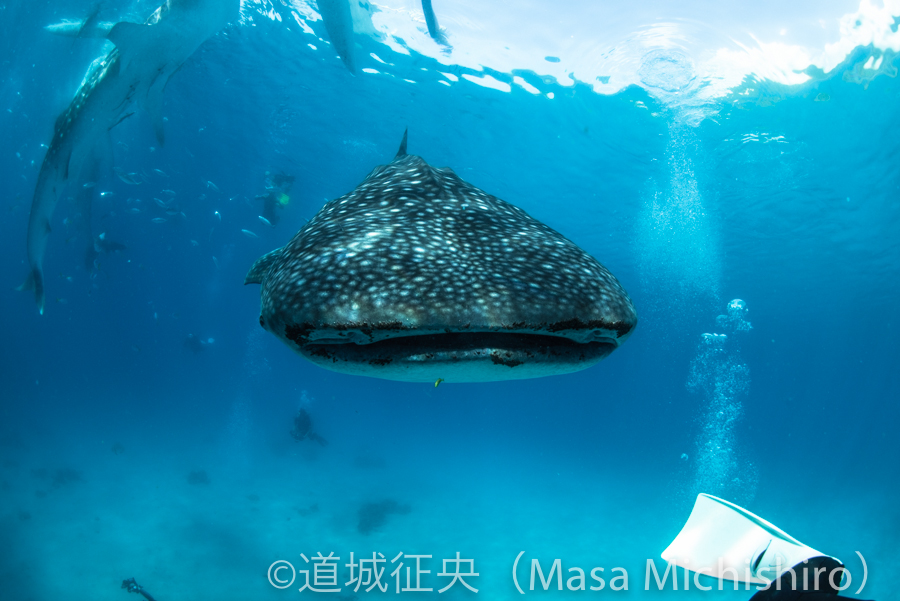 セブはオスロブにいるジンベイザメですが、カメラマンが喰われそうになりました。右下の足は私の足です。