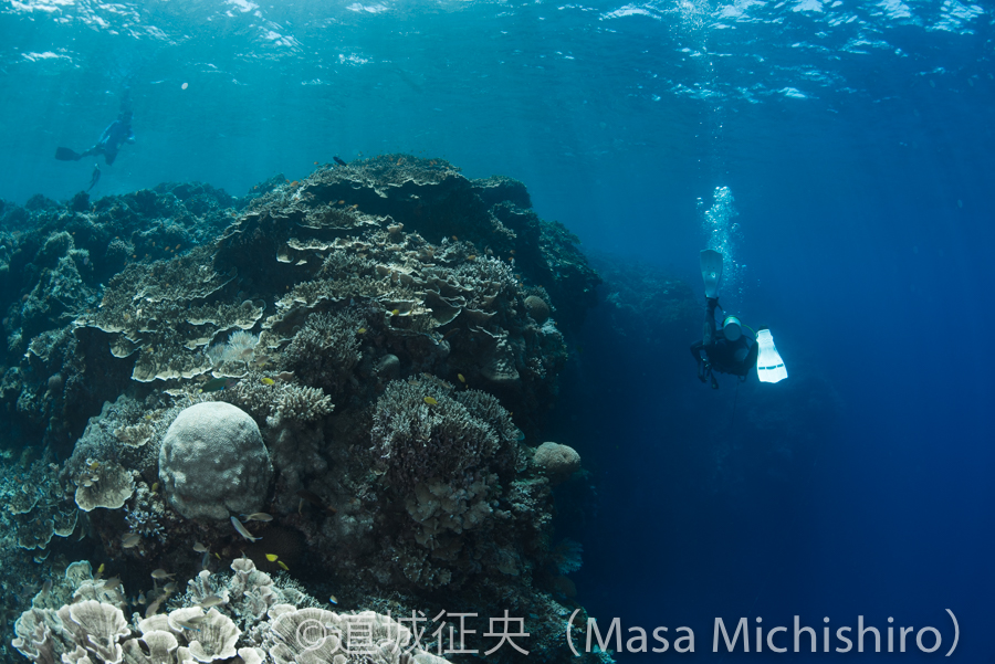 セブ島近くはバリカサグ島の水中景観です。左右でその雰囲気が違っていて、左側は浅瀬にシュノーケルやる人もいるのですが、ミグ側は一気に深場へと落ち込んでいます。