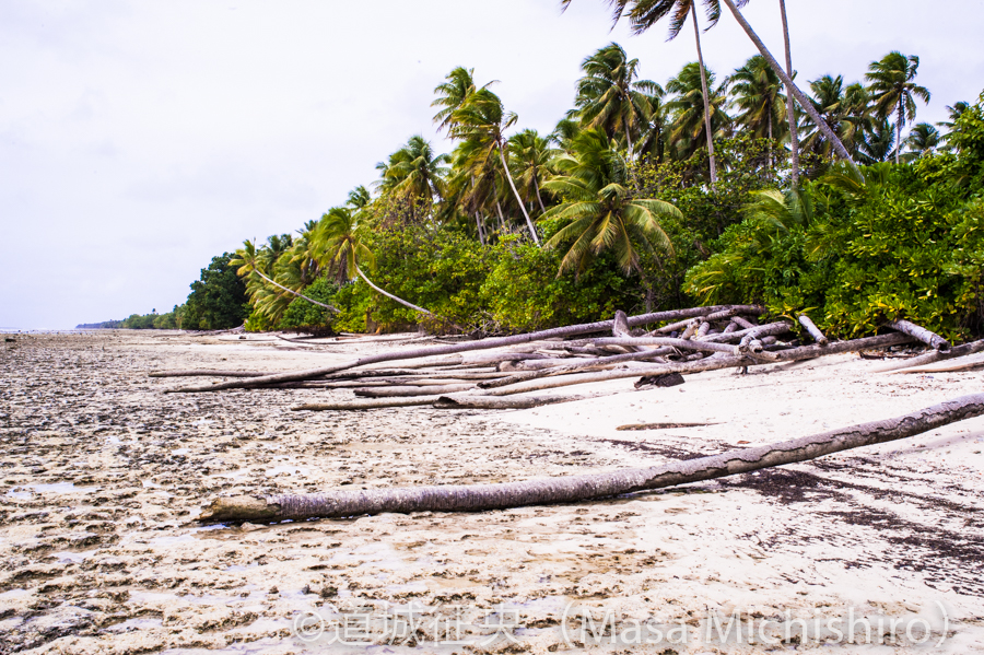 倒れるヤシの木 マーシャル諸島共和国マジュロ環礁での一コマです。海沿いの光景なのですが、温暖化による海面上昇なのかヤシの木が倒れています。 狭小の土地なので、今後は土地そのものにも影響があるでしょう。すでにマジュロは高潮による被害もでています。 公式Facebookページ マーシャル諸島共和国の過去の写真