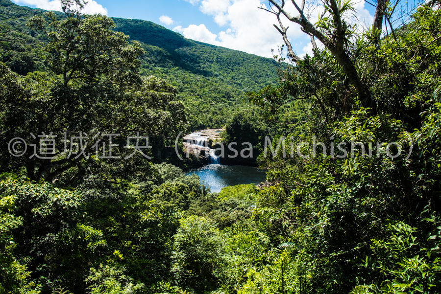 西表島にある「マリユドゥの滝」です。ジャングルなので風もなく、ただ暑いだけなので、そんな中に滝が見えるとホッとします。
