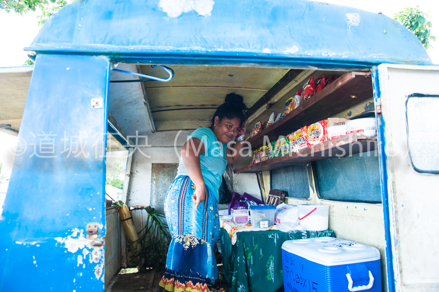 ポンペイのおばちゃん ミクロネシア連邦はポンペイでの一コマです。移動式売店のオバチャンです。無表情と言うより愛想悪そうな人だったんですが、カメラ向けるとこうなってくれました。可愛いおばちゃんです。 公式Facebookページ ポンペイの過去の写真