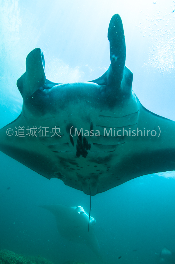 ミクロネシア連邦はヤップで見られる光景です。ヤップではマンタが定期的に出没するポイントがあります。ただ水深も5mぐらいと非常に浅いので、このようにすぐ頭上を通過していく感じに見られます。