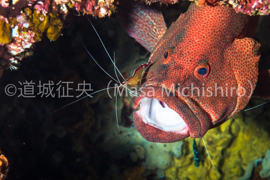 小笠原諸島の母島で見ることができました。エビによるクリーニングのシーンです。