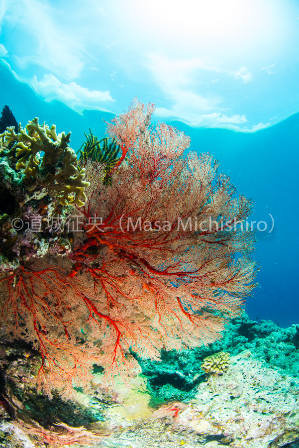 西表島のイソバナ 沖縄の西表島での1枚です。海の中の風景を呂ドルイソバナというサンゴの仲間になります。サンゴと言っても八放サンゴ亜綱というソフトコーラルや宝石サンゴの仲間に入ります。 水面も近く、そして天気も良かったので上はご覧のようでした。 公式Facebookページ 西表島の過去の写真