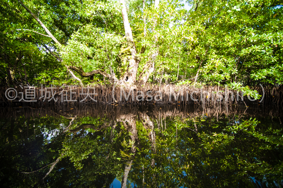 ミクロネシア連邦のコスラエはその昔クサイ島と呼ばれていました。さてこの島ではマングローブカヤックツアーをやっていて、その林のなかに入ると緑のにおいが漂ってきます。カヌーを停めてしばらくすると船の引き波もなくなるので、水面にマングローブの樹木が映ります。