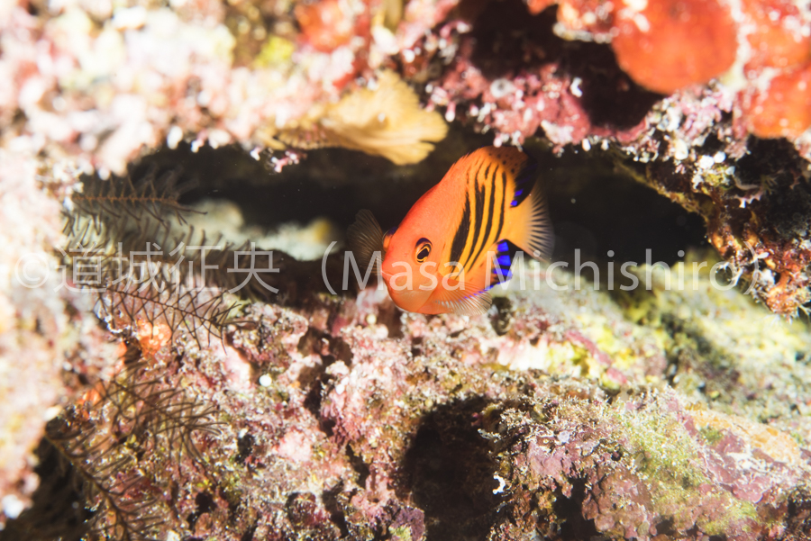 ミクロネシア連邦のポンペイで撮った1枚。フレームエンゼルフィッシュはミクロネシア圏で見られる魚です。よく動き回るという魚なので、撮るのも一苦労です。