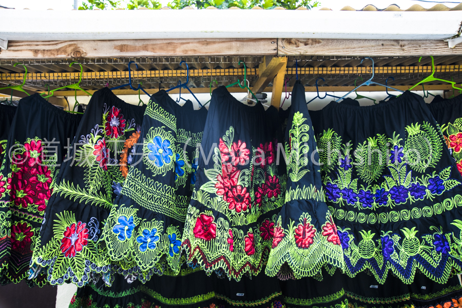 このスカート、刺繍も精巧なことから案外いい値段します。だいたいひとつ50~60ドルぐらいですね。昔はすべて手縫いだったそうです。