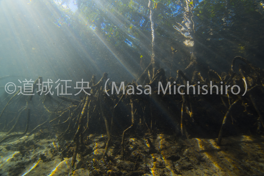 西表島はマングローブと呼ばれる植物の宝庫であります。水に、しかも海水にも強いことで知られています。また水に浸かってることによってバクテリアがおこなっている落ち葉の分解もその速度が遅いことから二酸化炭素の放出も少ないと言われています。写真はいくつかある根の種類、その中の膝根(しっこん)と呼ばれているものです。