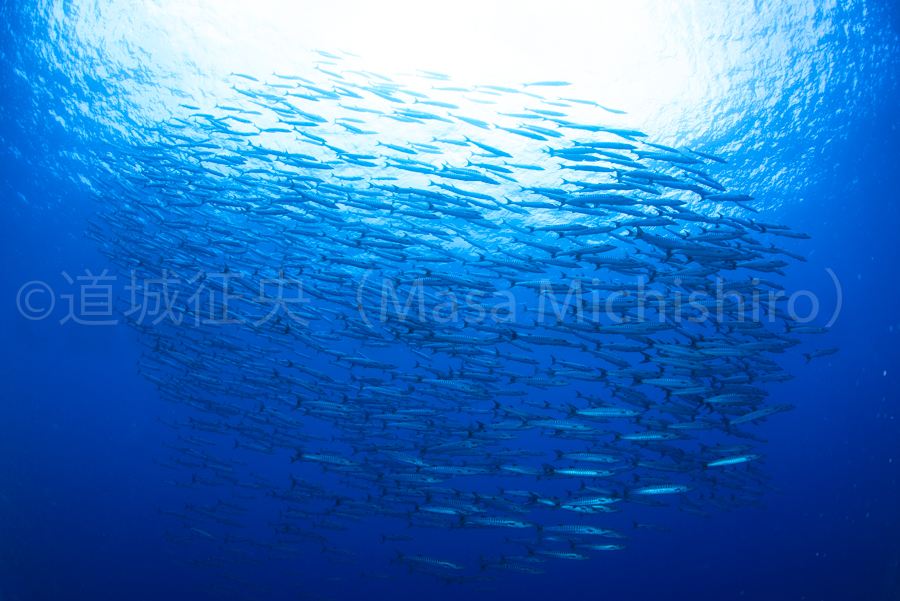 ミクロネシア連邦のポンペイでの1枚です。サンゴ礁、マングローブと多様な生態系を持つポンペイならではの光景です。その多様性はご覧のようなバラクーダの群れをいつも呼んできてくれます。