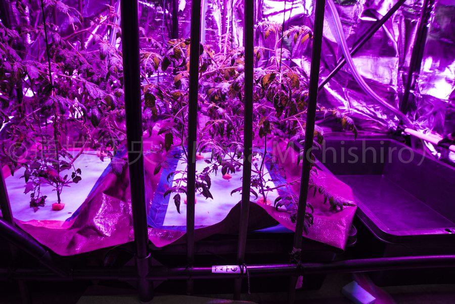 みなさんはスーパーに行けば普通に魚を買うことができ、魚料理屋や居酒屋に行けば魚を食べることでき、その激減数を感じることができないでしょうが、実際は7割減、9割減なんていう魚種もザラであります。よって2048年には「地球上から食べられる魚がいなくなる」と言われています。完全養殖は不安定、畜養は環境負荷が高いと言われている中、また違った形で捕る漁業から育てる漁業への転換のきっかけになるのが「好適環境水」を使った閉鎖循環型の水槽でしょう。これがあれば山間部でも魚を育てることができます。また一切捨てることをしない水であるため、循環の過程で野菜を栽培することも可能です(2枚目の写真はトマト栽培)。その魔法の水を見に岡山理科大学の山本先生に会いに行って来ました。