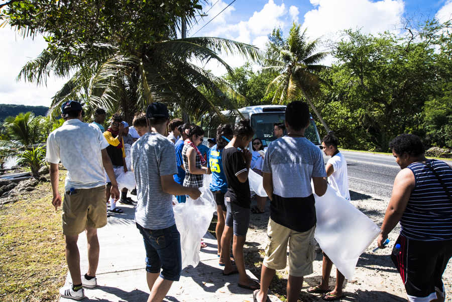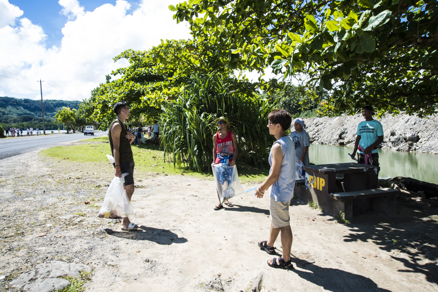 今回参加するにあたって、現地でゴミ廃棄物の啓蒙活動に挑んでいる麗澤大学、立命館大学の学生たちが参加してくれました。しかし私たち日本人はあくまでも部外者です。部外者がいくら自然環境のためだと言ってゴミという単語のない人達にゴミは「こう捨てなさい」と教えとくのはいささか上から目線だと思います。そのため「気付いてもらう」という考えのもと、地元カレッジオブマイクロネシアの学生にも参加を促しました。