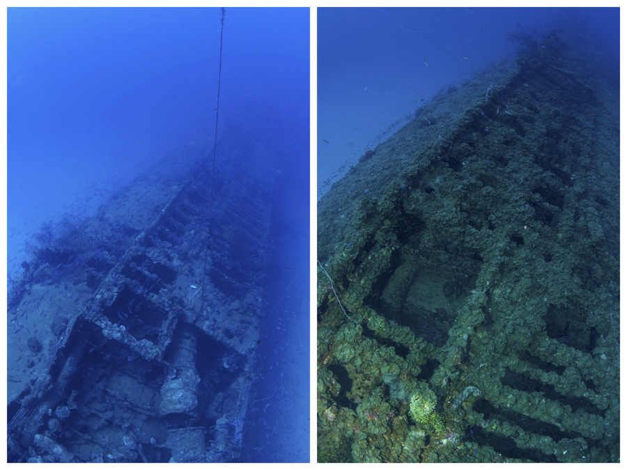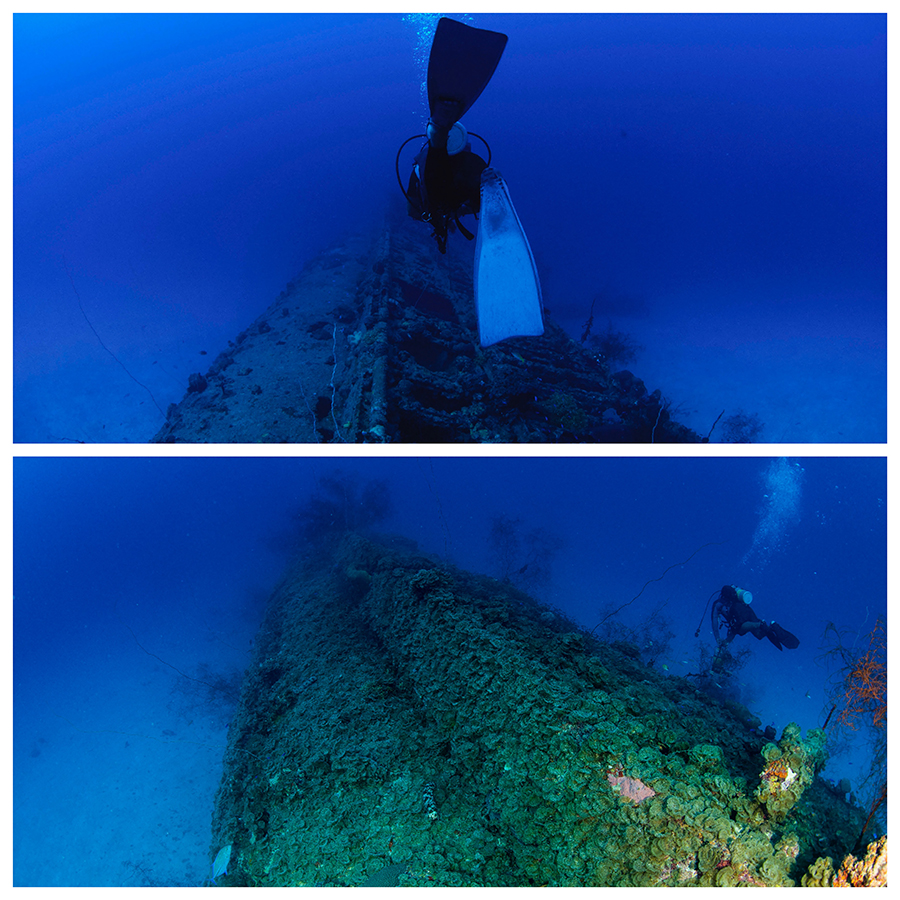 8年前と今の伊169【2019/2/14】 ミクロネシア連邦チューク諸島(旧トラック諸島)の空襲から75年ということもあって、昨日NHKでトラック空襲の番組が放送された。 ところで8年前に潜った時に撮った「伊169」という潜水艦にはついこの前も潜った。深度42mに沈んでいるのだが、8年でその姿は大きく変わっていた。8年前は船体がクッキリと見えていたのだが、今はキクラゲのようなソフトコーラルがビッシリとその船体を覆っていた。1枚目の上、2枚目の左は8年前、それ以外はこの前の写真。 公式Facebookページ