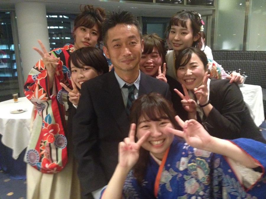 私が講師を務める専門学校の卒業式がありました。この写真以外にも案外私はモテモテでしたよ。
