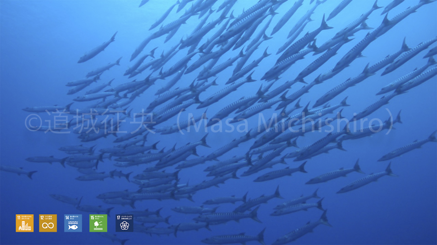 ポンペイのバラクーダ[動画] 動画はこちらからご覧下さい。 ミクロネシア連邦ポンペイ島のリーフ際で見られるバラクーダの群れ。静かな海を悠々と泳ぐ姿は圧巻。手に取れそうな距離まで近づくのだが、決して手に触れることはない。自然と避けていく。 公式Facebookページ