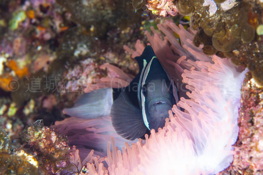 小笠原諸島独特なクマノミ 小笠原諸島の名物と言えば真っ黒に白線のクマノミだろう。まったく黄色が入ってないのが、ここのクマノミの特徴。「生物多様性」は三つのレベルで考えられている。その三つの中に「遺伝子の多様性」というのがある。貝殻は一つ一つ模様が違っていたり、ホタルは東日本と西日本とでは発光の仕方が違うという。小笠原諸島のクマノミも遺伝子レベルで他の地域で見られるクマノミとの違いを表していて、実に面白いと思う。 小笠原諸島の過去の写真 公式Facebookページ