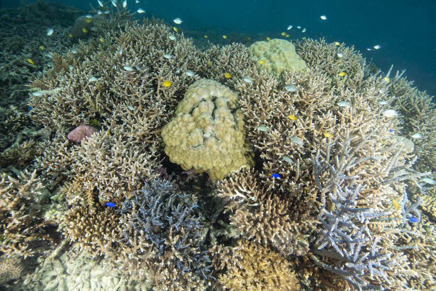 水中には色とりどり、様々な種類のサンゴが広がっているところが印象的であります。
