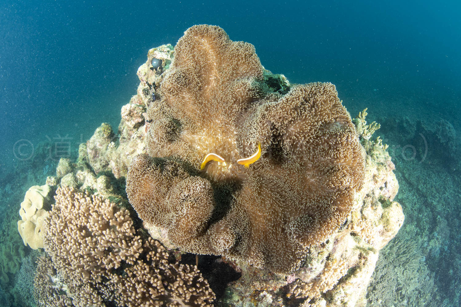 沖縄本島は平安座島で撮ったセジロクマノミです。カップルなのか、お互い顔を合わせて・・・キス間近なのか?