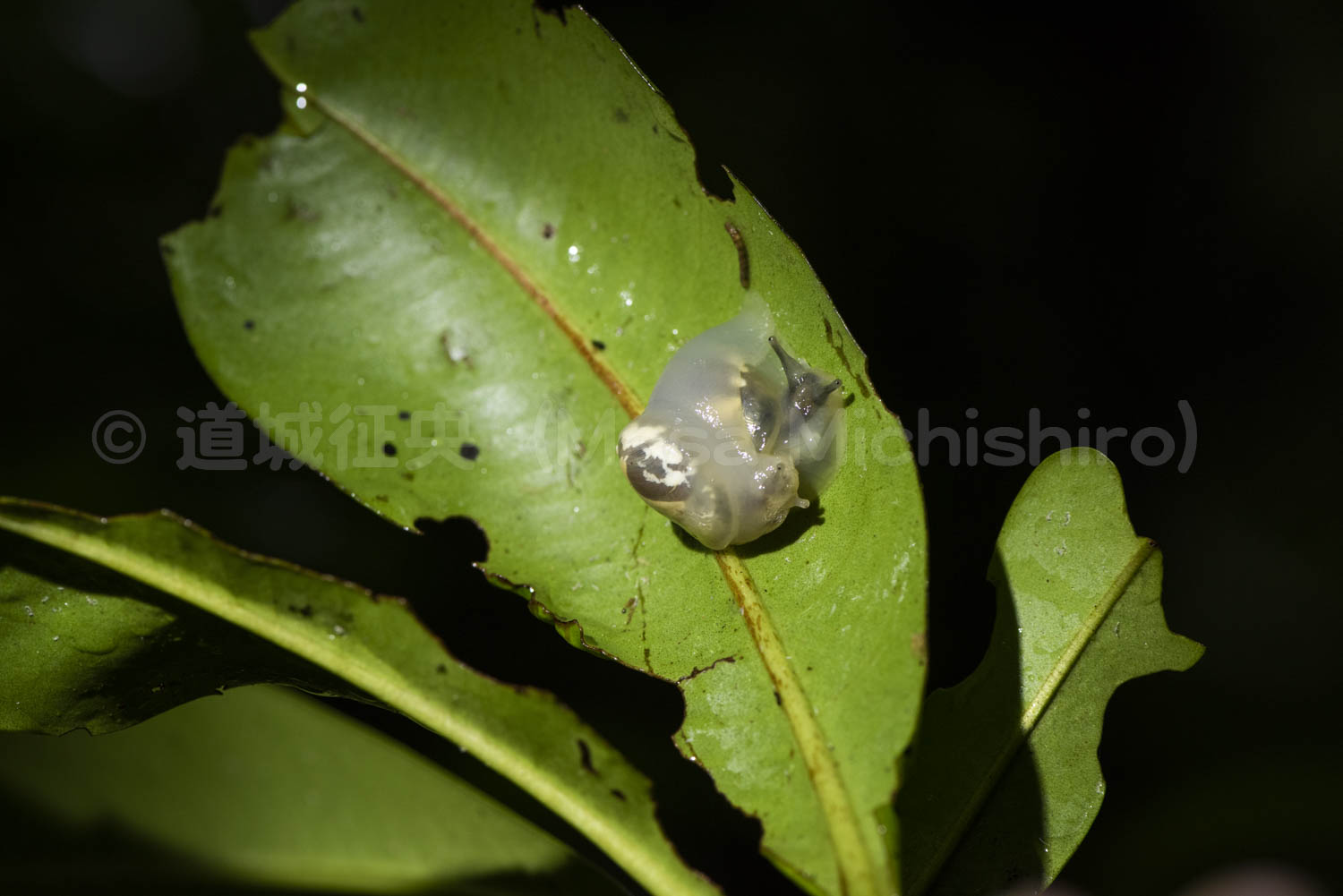写真はオガサワラオカモノアラガイです。父島では絶滅し、母島にしかいません。そして比較的標高の高いところにいるので周囲は湿気が多く、そのため殻が退化してしまっているマイマイであります。