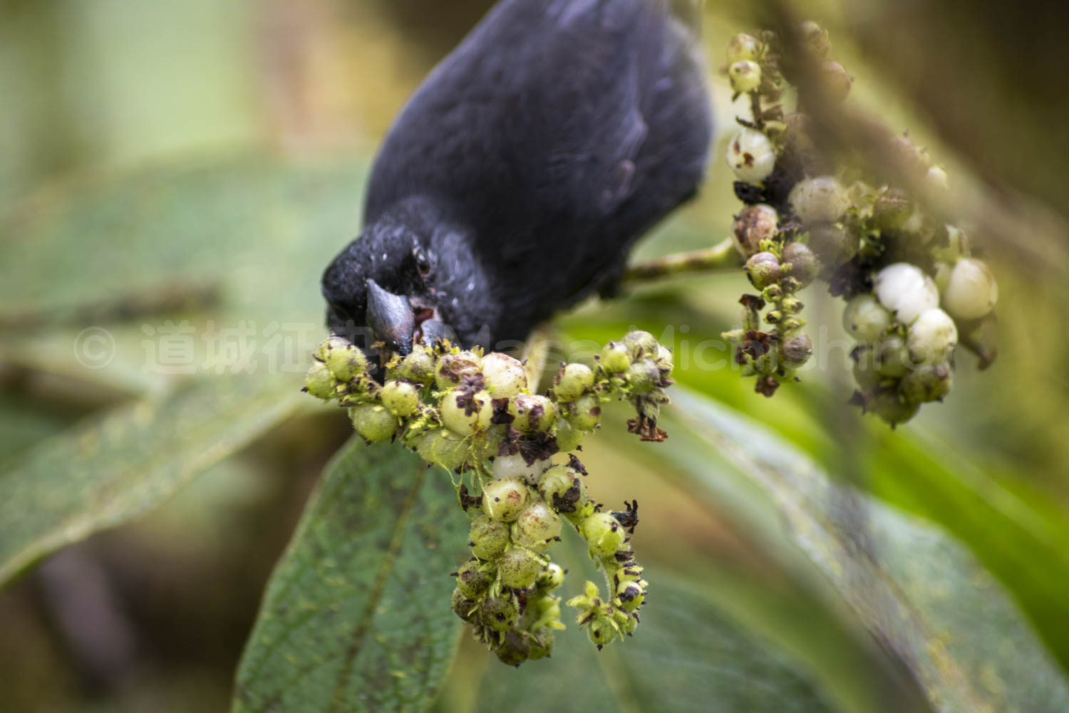 このダーウィン・フィンチは木の実を食べるためにふさわしい形状をしています。