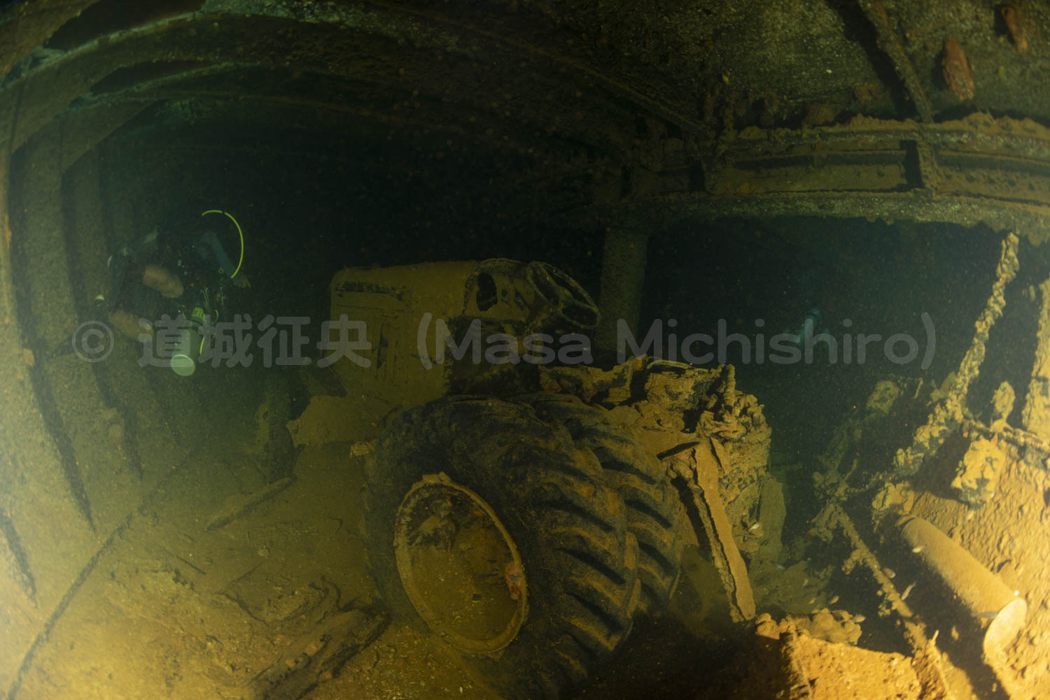 チューク諸島に沈む伯耆丸 ミクロネシア連邦チューク諸島(旧名トラック諸島)の環礁内に沈む「伯耆丸」という日本の船です。 1944年2月に米軍の攻撃によって沈められたこの船は今にも朽ち果てそうですが、狭いながら何とか船内に入ることができます。 トラクター、トラック、ブルドーザーなどがこの狭い船倉の中にたくさん格納されています。 狭さという気味悪さを克服すると、その先には太平洋戦争の実態を見ることが出来ます。もうあのような時代が来ないことを願うばかりです。 チューク諸島の過去の写真 公式Facebookページ noteやっています!