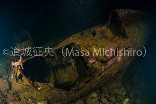 見た目何なのかわかりませんよね?海の中というのもわからない位です。これはミクロネシア連邦チューク諸島(旧トラック諸島)に沈む桃川丸と言う船です。その船内の一部です。先にあるのは旧日本海軍の飛行機の機体でしょう。船体も機体も朽ち果てていて、その対応も急がれます。