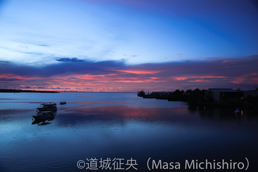 ヤップの朝焼けです。島はサンゴ礁に囲まれているので海面は穏やかです。でも空を見ると雲が多いですから、多分前の晩はスコールでもあったことでしょう。